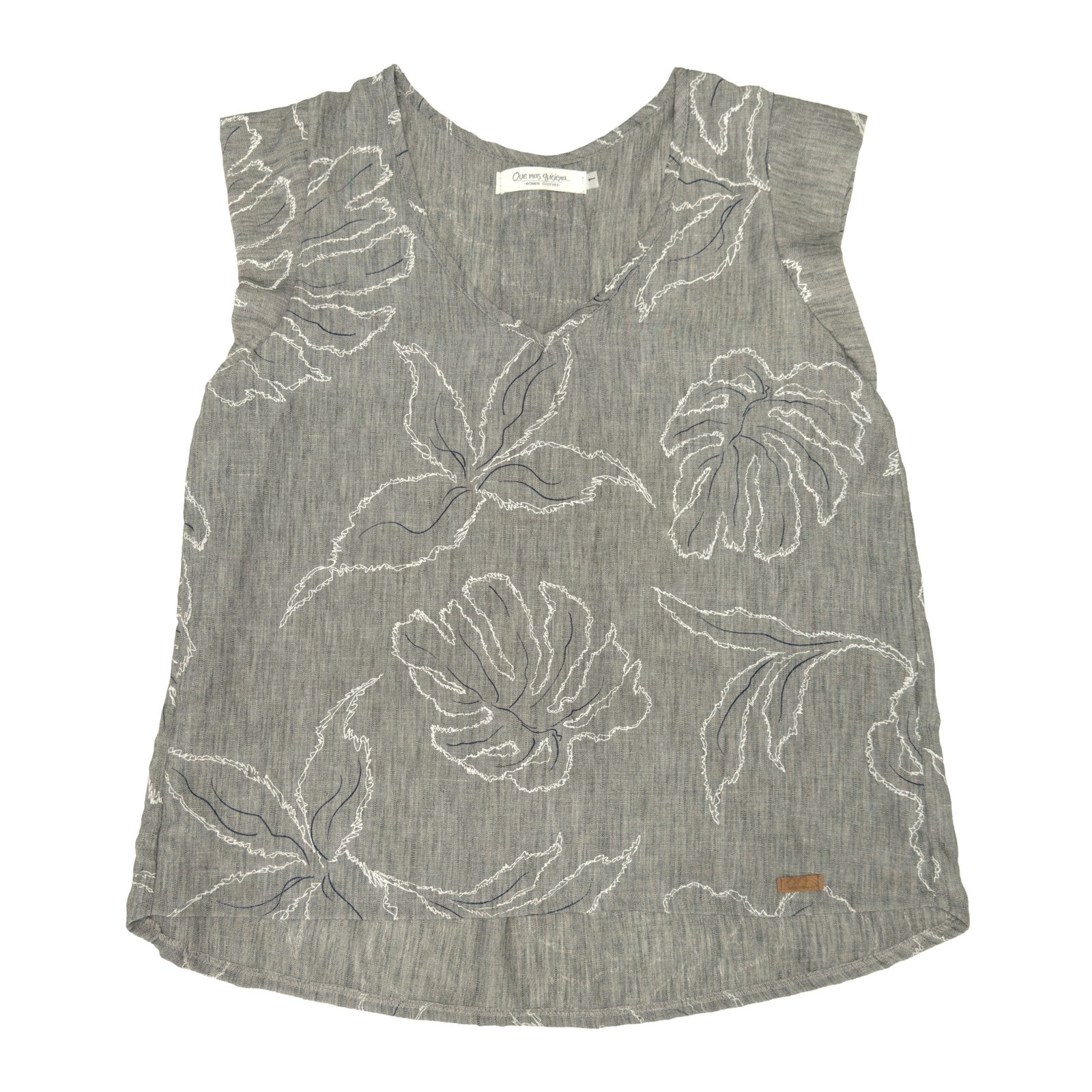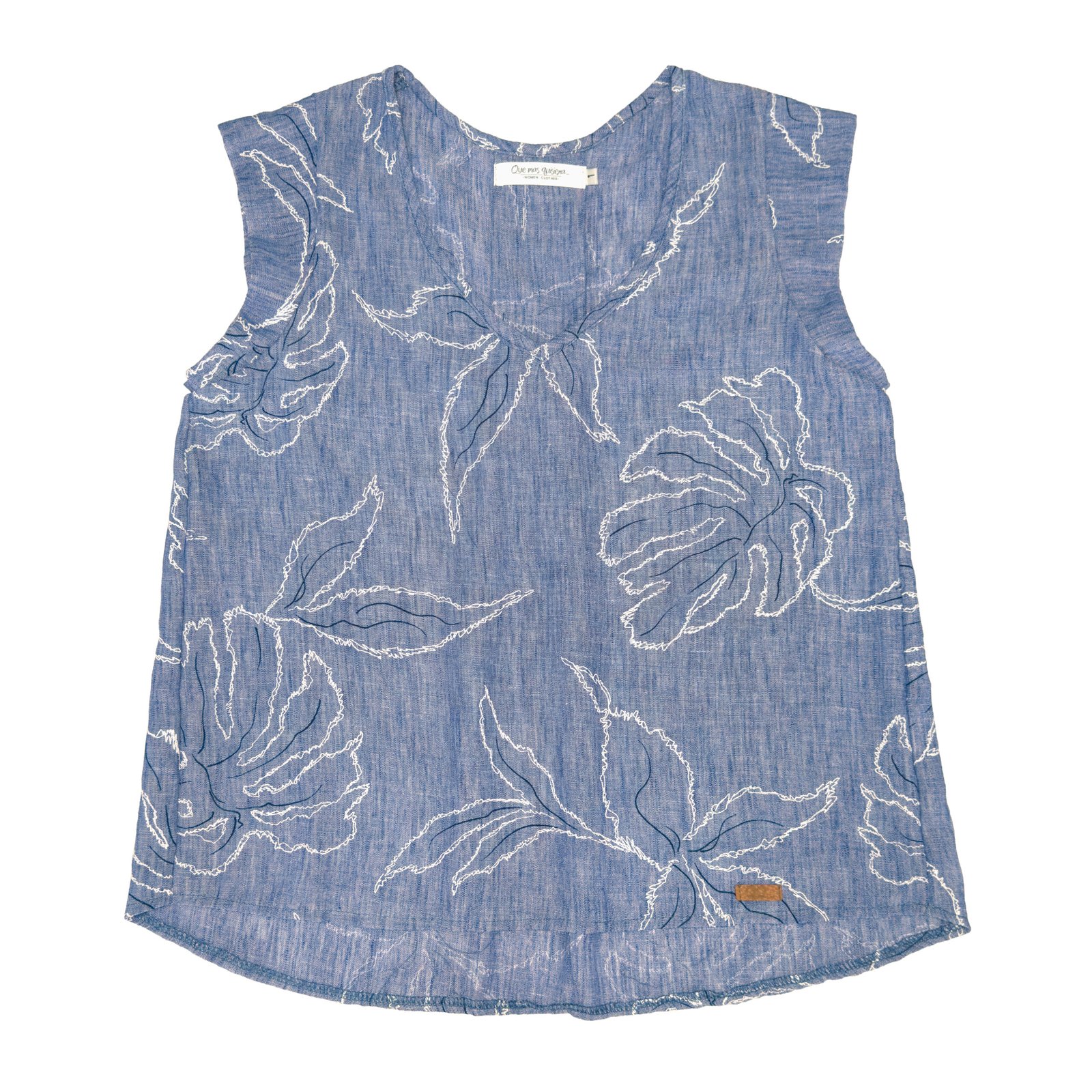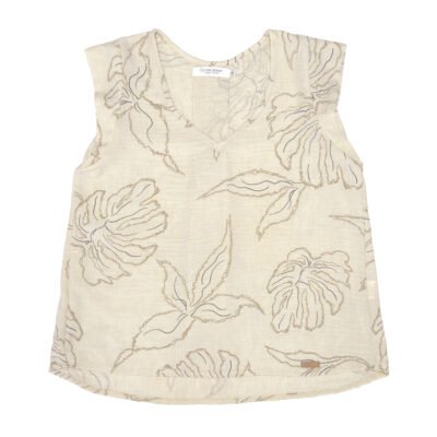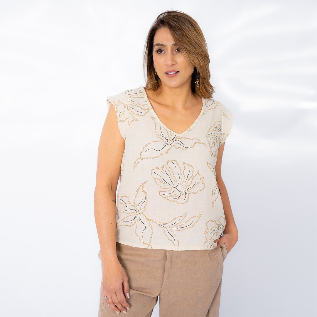 Blusa lino gauze escote “v”, manga corta y tabla en espalda.